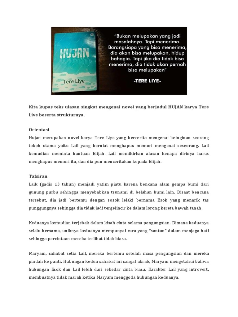 Novel Hujan buku pelajaran film drama persahabatan dsb. Contoh teks cerita fiksi novel berdasarkan strukturnya. Contoh Teks Ulasan Beserta Strukturnya.