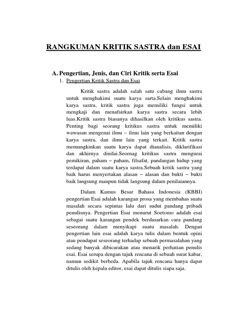 Rangkuman Kritik Sastra Dan Esai
